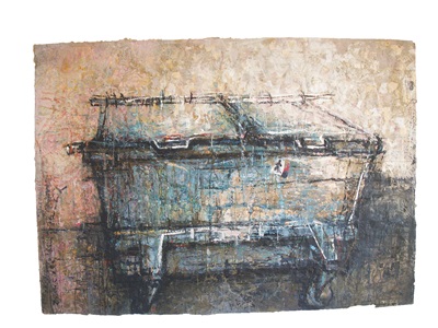 "Blaue Mülltonne", 100 x 140 cm, 1999