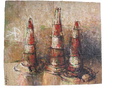 "Drei Strassenkegel", 118 x 137 cm, 1998